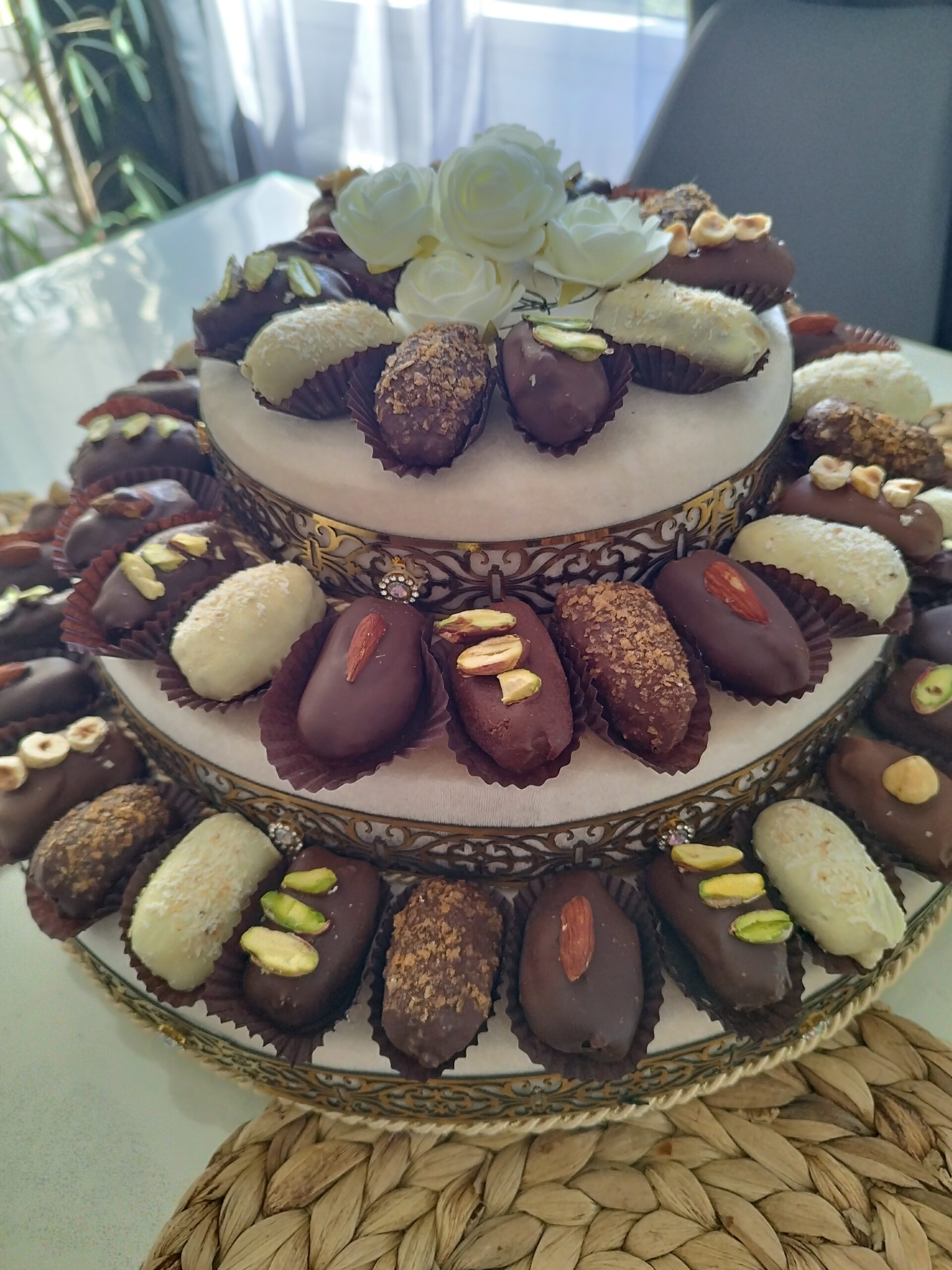 Nos dattes fourrées sont préparées avec les meilleurs ingrédients, offrant une délicieuse et saine gourmandise pour vous et vos proches. Chaque pièce est soigneusement élaborée pour un équilibre parfait entre saveur et nutrition.